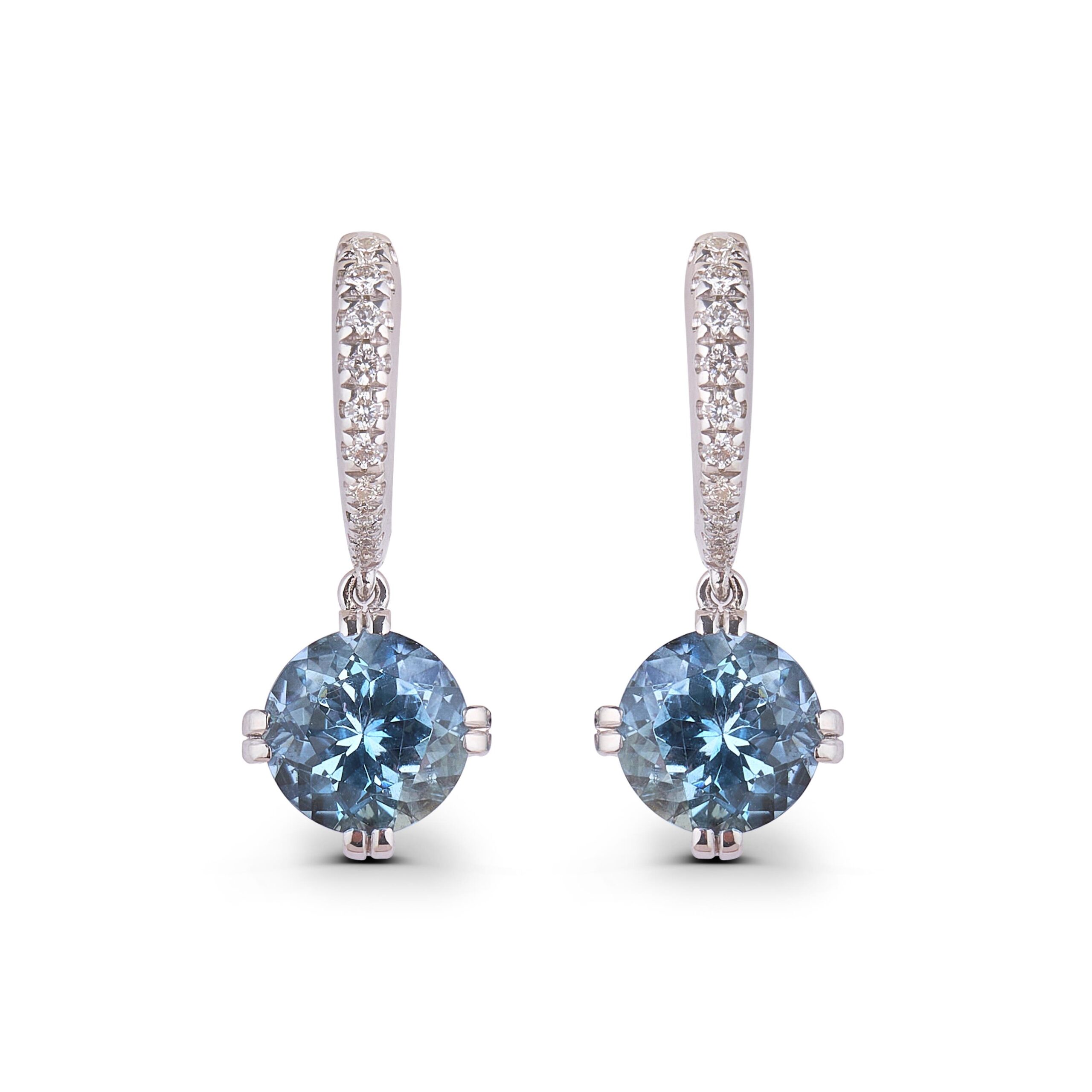 Atelier Heldwein “1902” Earrings with Aquamarine 4.85g 750/000 White Gold Diamonds Brilliant 0.21ct. 2x Aquamarine 3.37ct.