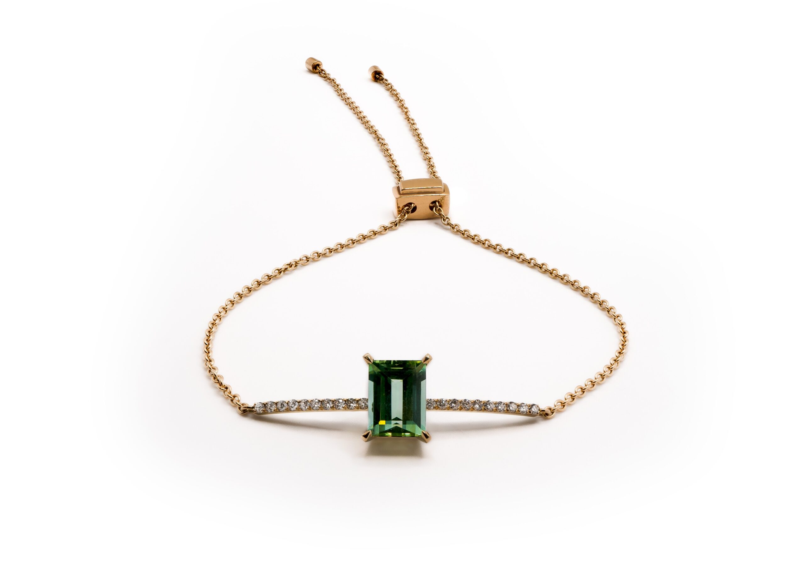 Atelier Heldwein “Herolino” bracelet 4g 750/000 yellow gold 1x African green tourmaline 1.70ct. 20x diamonds brilliant 0.13ct.