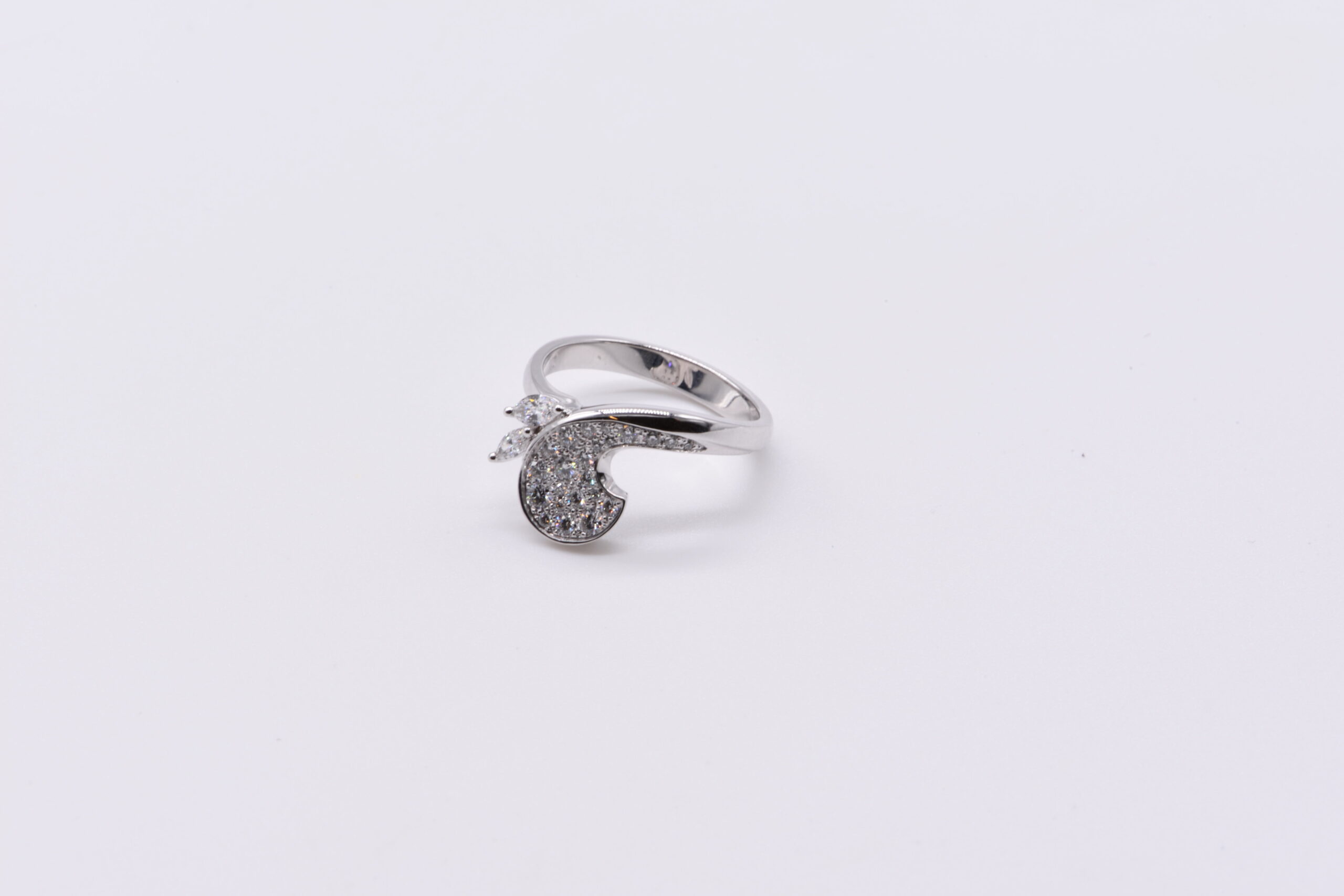 Atelier Heldwein “La Fleur” ring with pavée diamonds in white gold 4.70g 750/000 white gold 23 brilliant-cut diamonds 0.36ct. Diamond Marquise 0.06ct. Diamond Marquise 0.10ct. Ring size 54