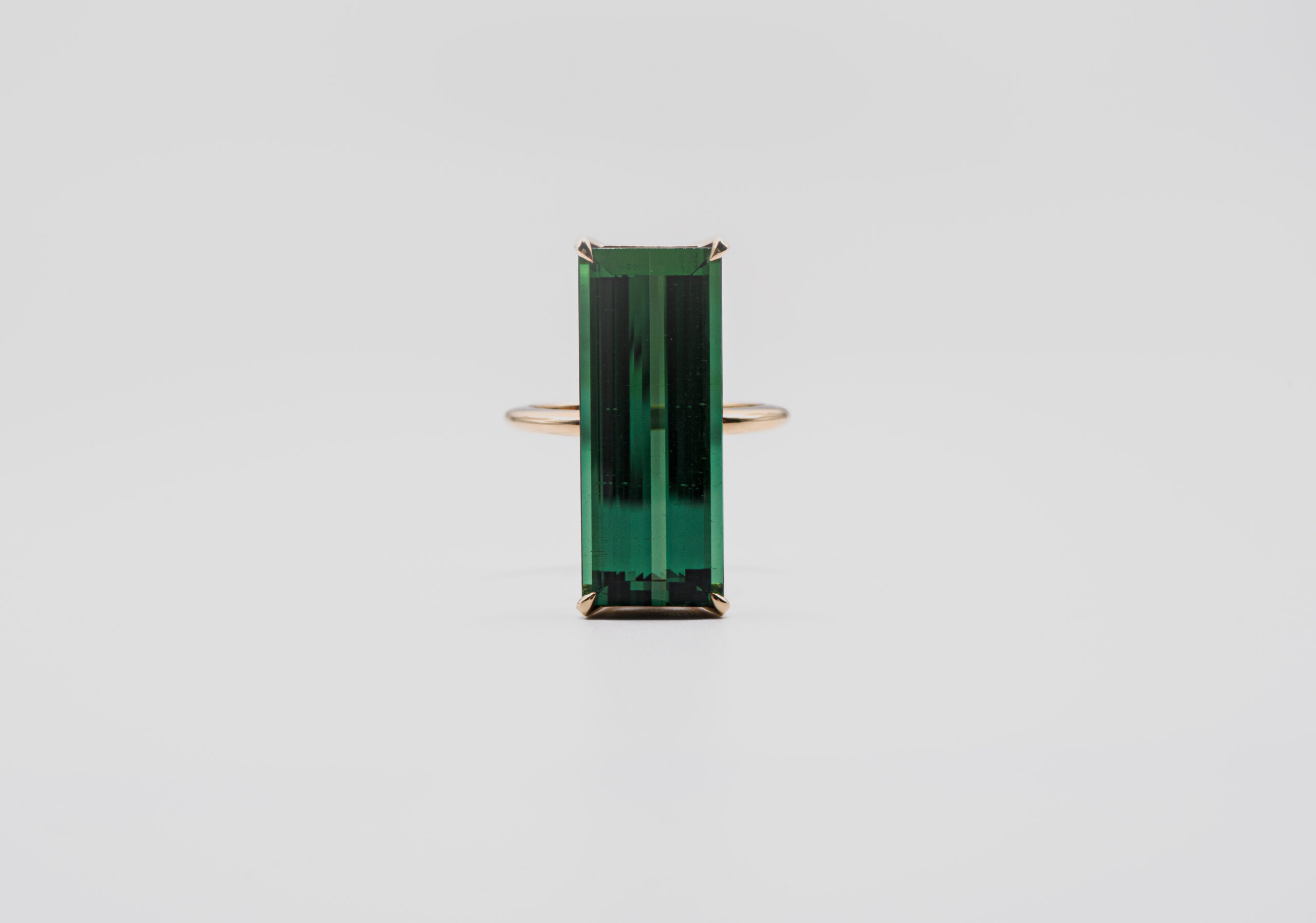 Atelier Heldwein „Hero“ Ring 6,5g 750/000 Gelbgold 1x grüner Turmalin 15,16ct. Ringgröße 56