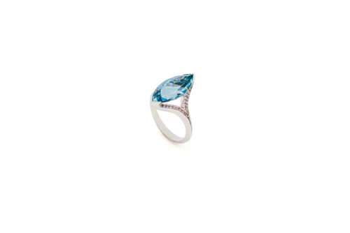 „Marquise“ Ring mit Aquamarin und rosa Saphiren in Weißgold